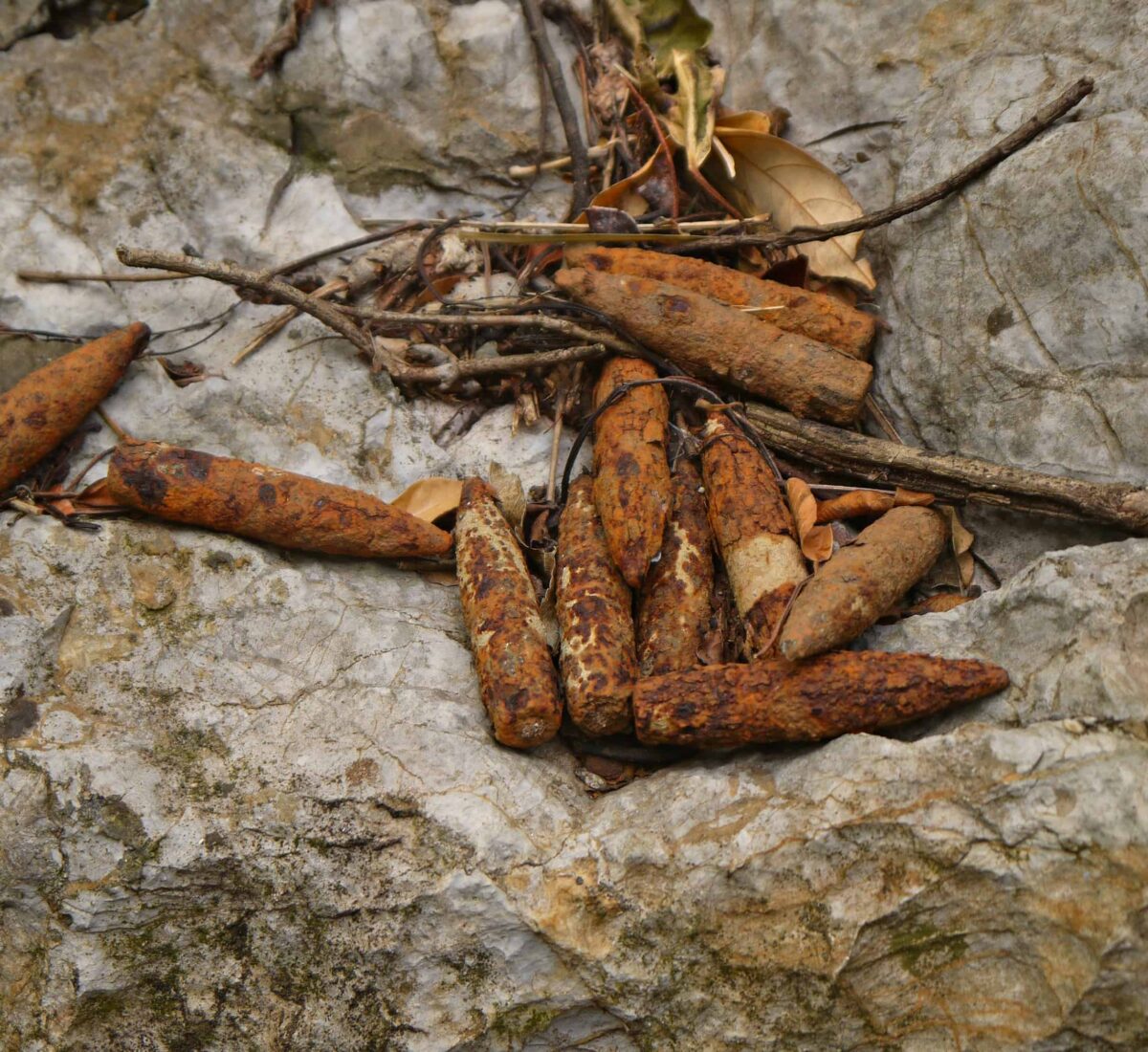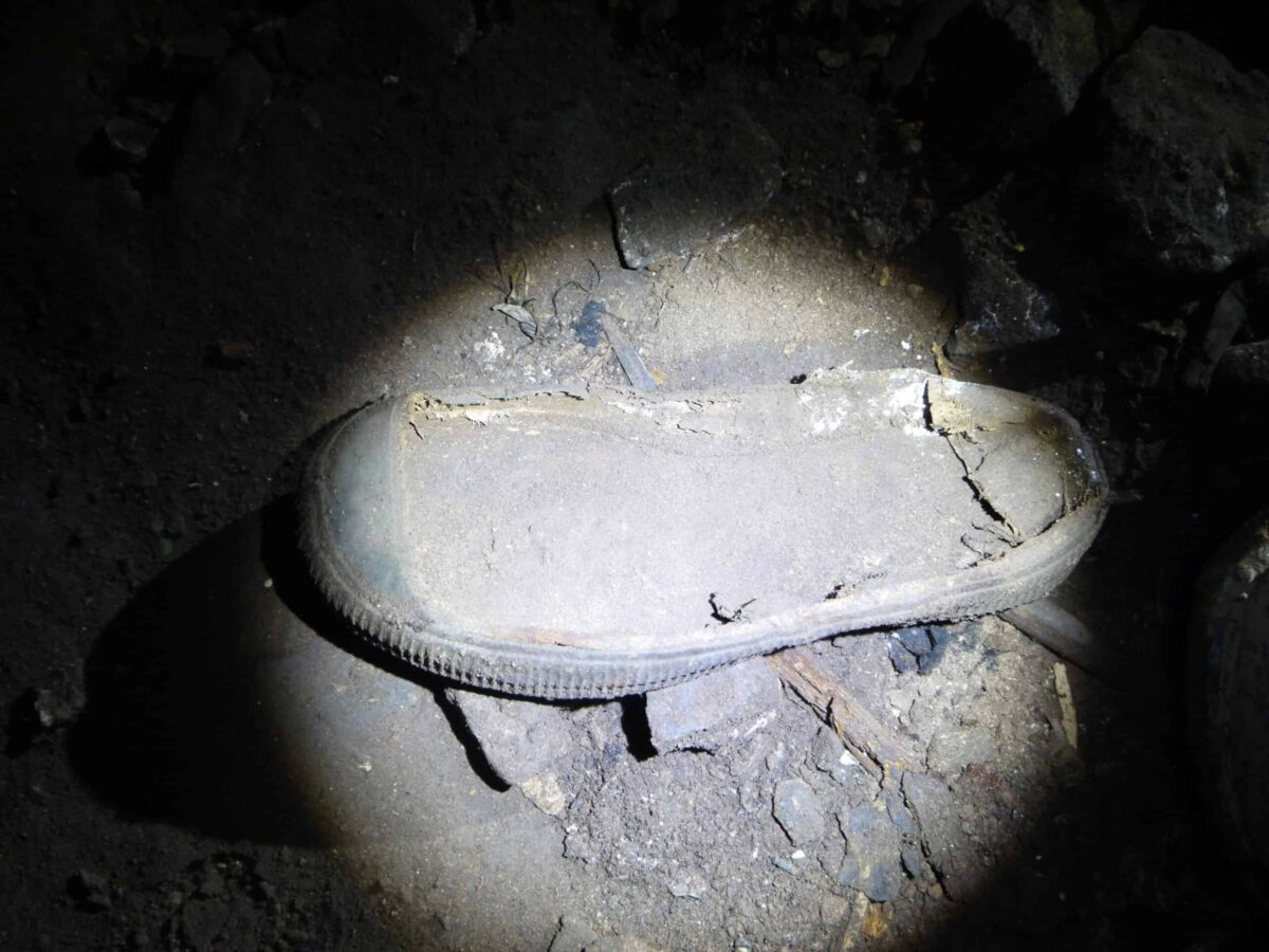 We returned in December 2022, the whole cave has been fenced off with barbed wire, we jumped the fence and went to have a look around. It appears the 2nd cave has collapsed, I imagine that’s why its been fenced off. We had a poke around and it wasn’t long before we found some more NVA sandal’s, then a live Anti personal mine, BLU-3, it looked brand new, time to leave.